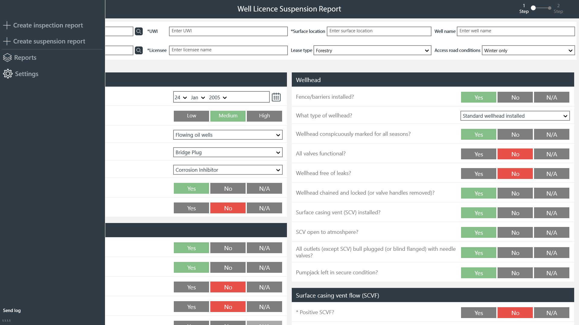 Task: Create a corporate mobile app for documenting wellsite inspection results in *.csv and *.pdf formats. Functionality included preloaded wellsite locations, report GPS tagging, individual user activation, consolidating multiple reports, online and offline data loss prevention modes.